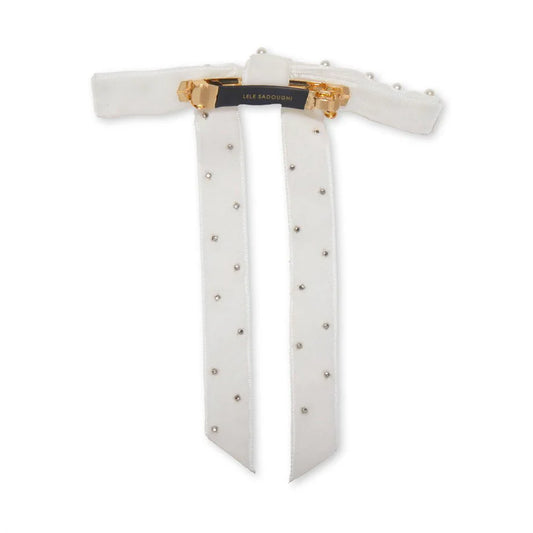 IVORY BARDOT PEARL EMBELLISHED BOW BARRETTE