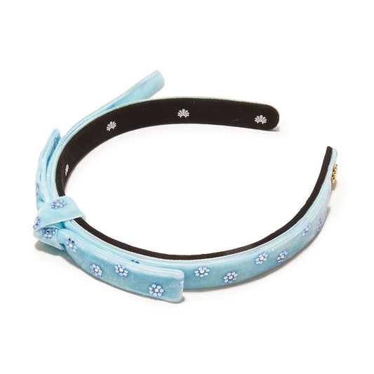 LAKE BLUE EMBELLISHED BARDOT SLIM RIBBON HEADBAND